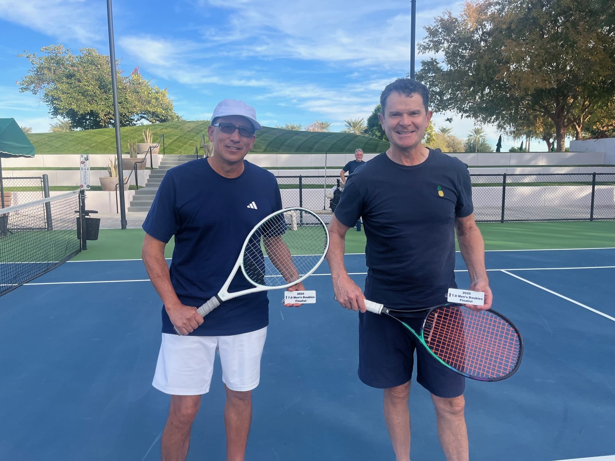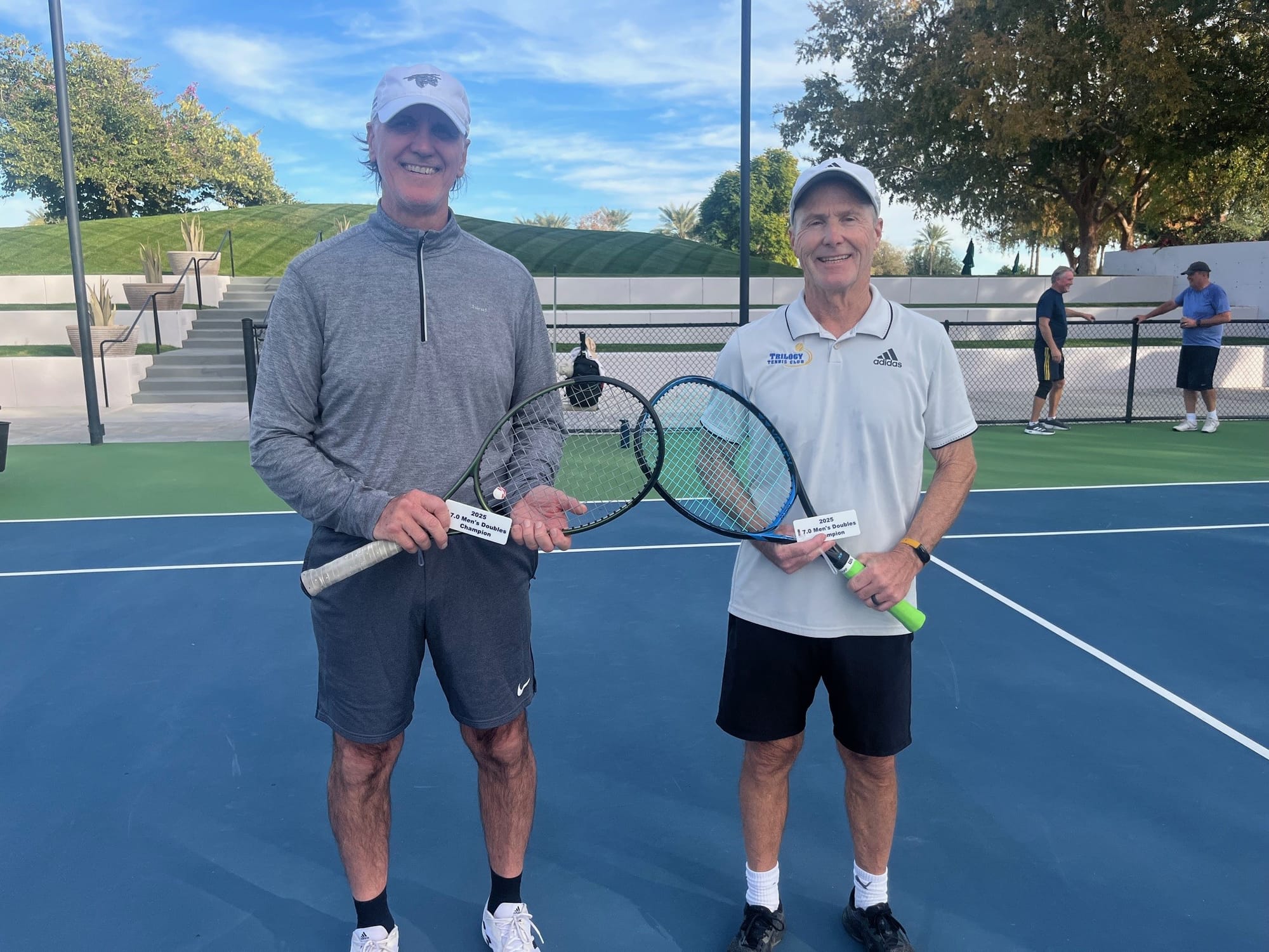 Congratulations to all! 6.5 Division; Doug and Suzanne Grant second place finishers/Sandy Gurtler and Dan Sarver champions. 7.0+ Division; Karen Fly and Micheal Zamora second place finishers/Kevin Donovan and Linda Leonard champions. Thanks to all who showed up to cheer the entrants on, it was a great day for tennis!